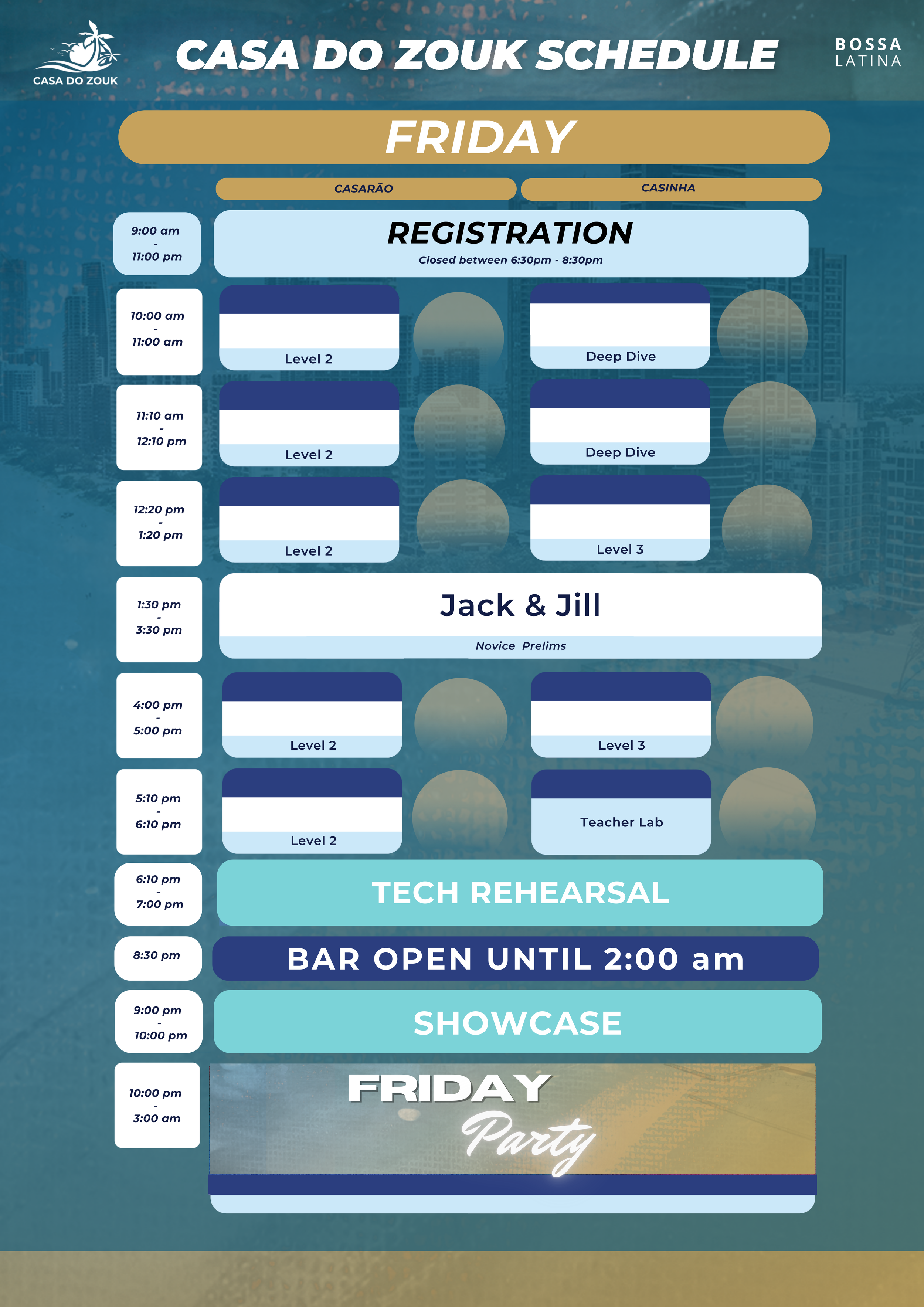 Explore a variety of Brazilian Zouk workshops designed for all levels of dancers. Our sessions focus on different aspects of the dance, including technique, musicality, and partner connection.